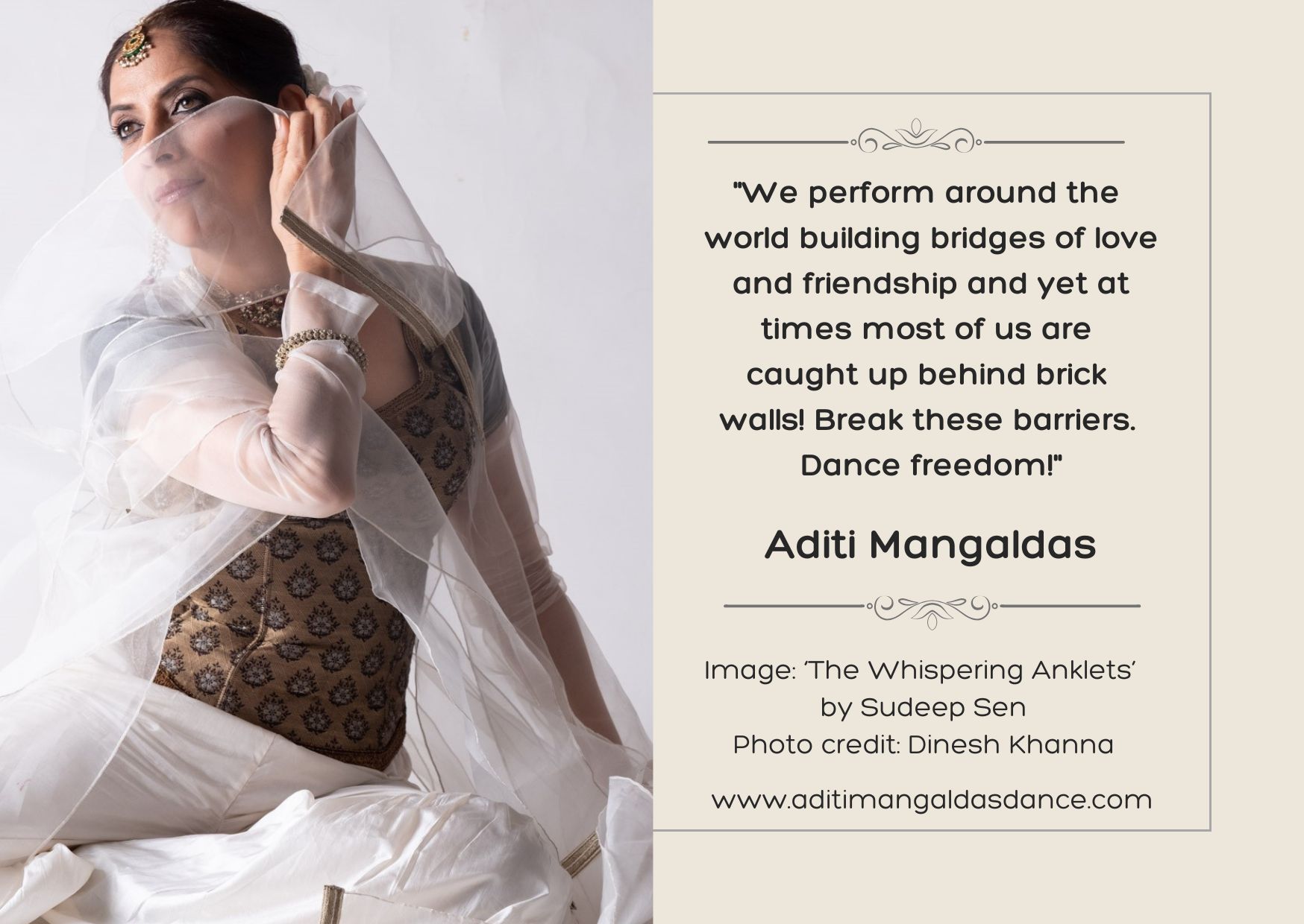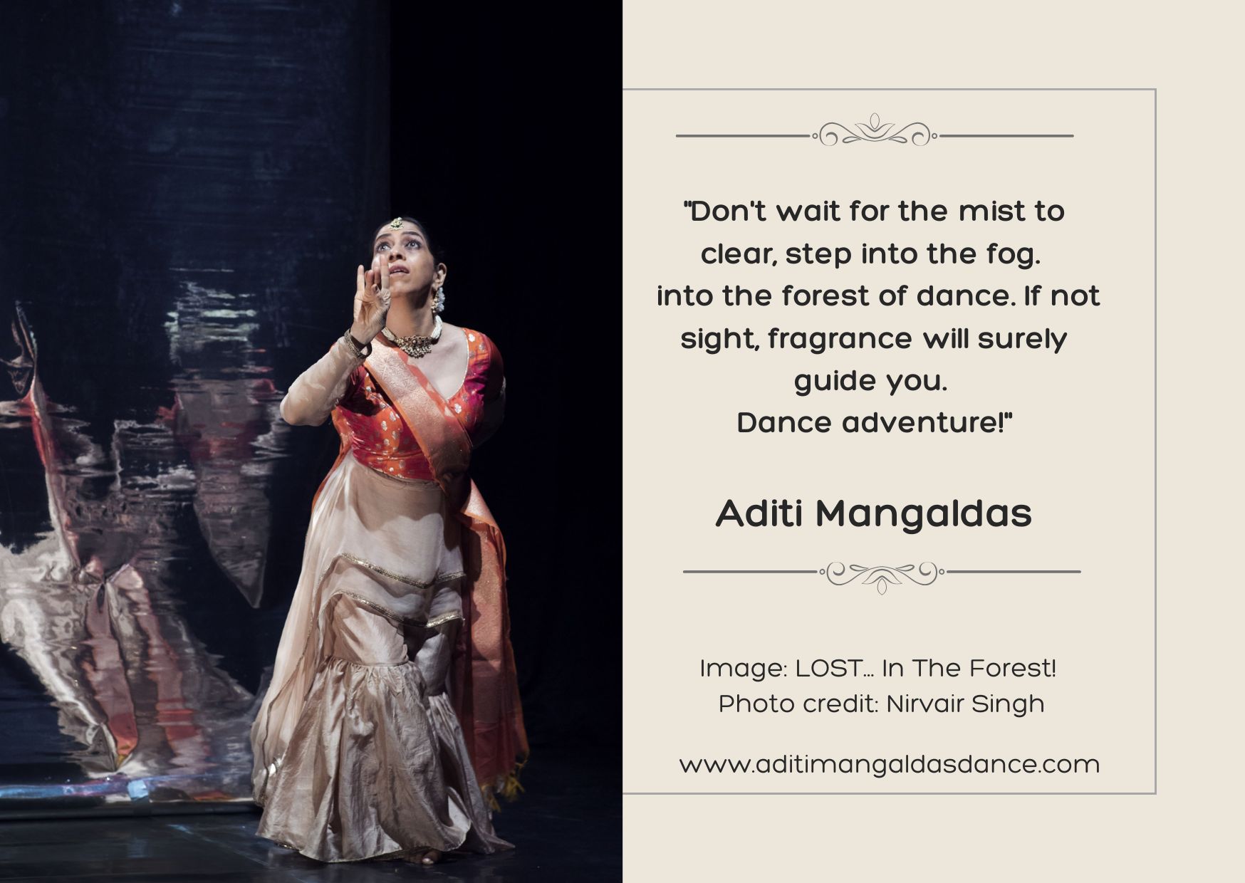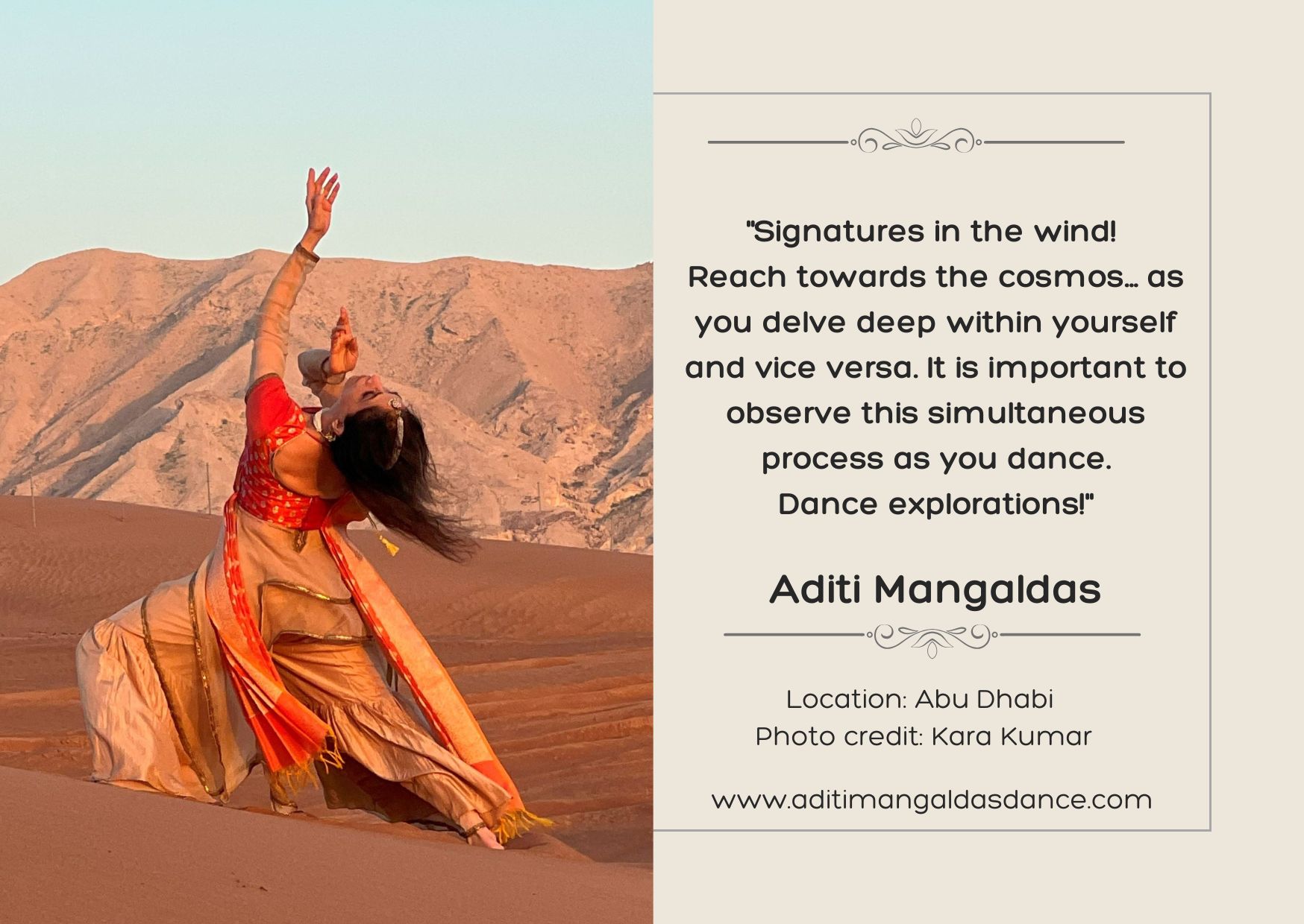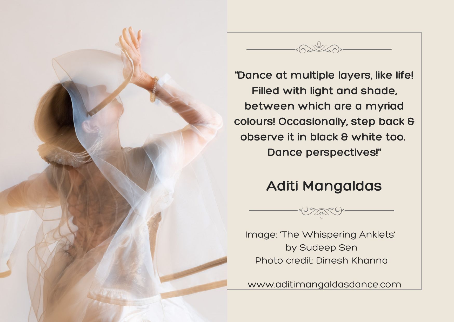 Postcards provide a unique physical touchpoint that stands out in a largely digital world, allowing for a more personal and authentic connection. They are also a tangible keepsake and a lasting memento of a shared moment or journey. Under the POSTCARD PROJECT, postcards with inspiring and motivating words from Aditi Mangaldas have been distributed to young artists she has met across the world, at workshops in the US, UK, Srilanka and many cities in India; and at school student visits to the Drishtikon Dance Foundation studio. Each postcard carries a quote and becomes a window into Aditi Mangaldas's artistic journey, with the objective to encourage young dancers to develop and find their own unique voice.